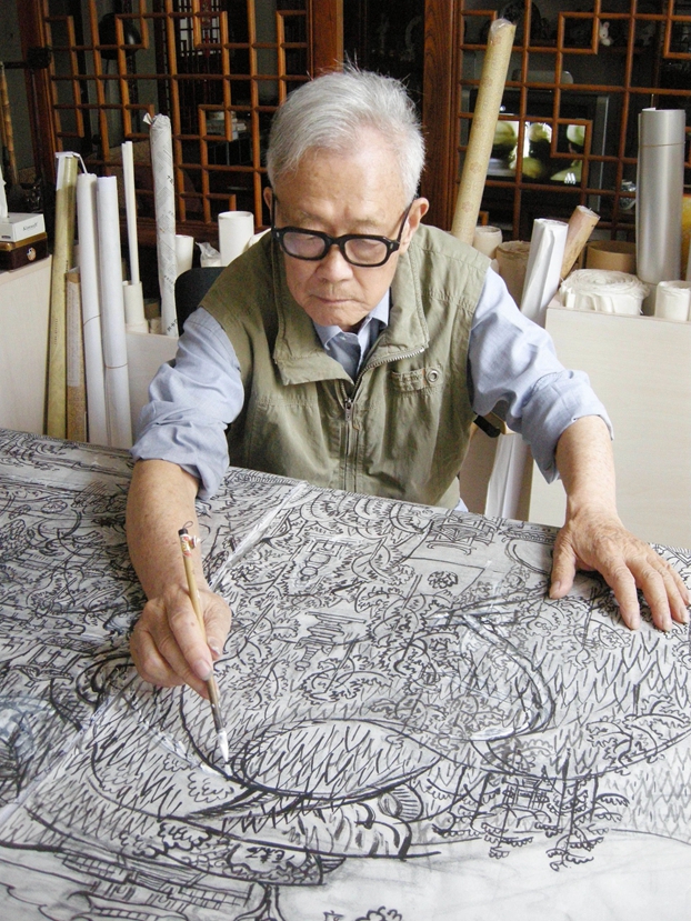 2011年6月,周令钊先生为北京湖南大厦创作丙烯壁画《长沙》