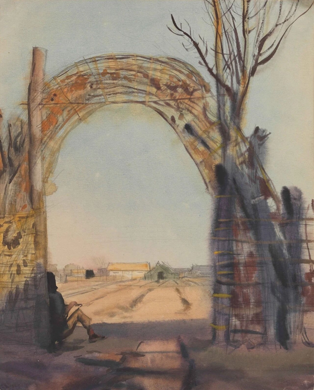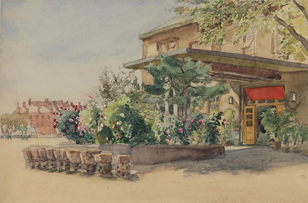 周令钊《老美院门前》21.2×32cm 纸本水彩,1953年,Ky开元集团美术馆藏