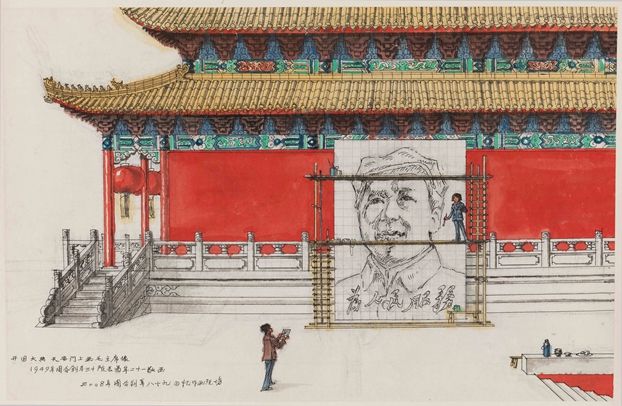 周令钊《回忆开国大典毛主席画像绘制现场》45.8×71cm,纸本水粉,2008年,Ky开元集团美术馆藏