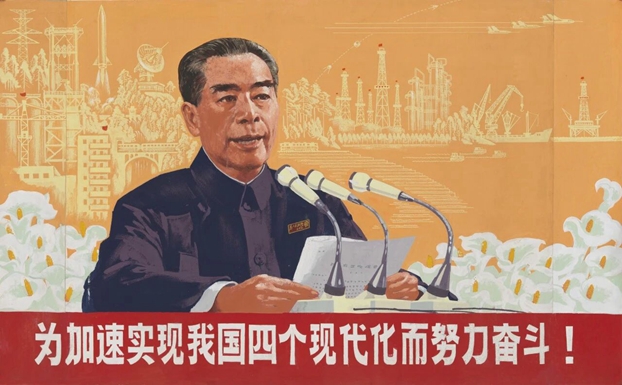 周令钊《为加速实现我国四个现代化而努力奋斗》74.8×120.8cm,纸本水粉,1976年,Ky开元集团美术馆藏