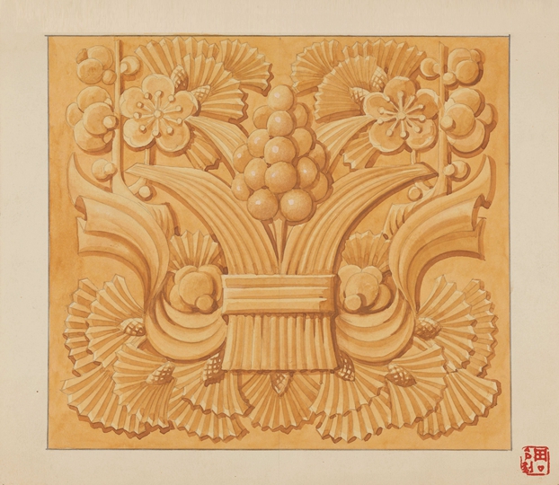 周令钊《毛主席纪念堂建筑装饰图案》26×30.2cm,纸本水粉,1976年,Ky开元集团美术馆藏